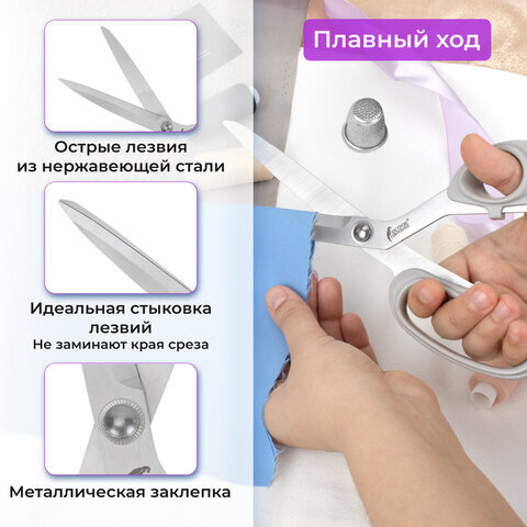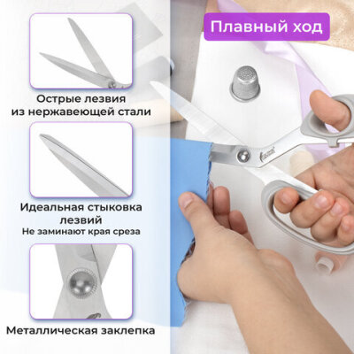 Портновские ножницы ОСТРОВ СОКРОВИЩ "КЛАССИЧЕСКИЕ отлично подходят для раскроя ткани. Острые лезвия из нержавеющей стали легко разрезают материал разной плотности, не заминая края.