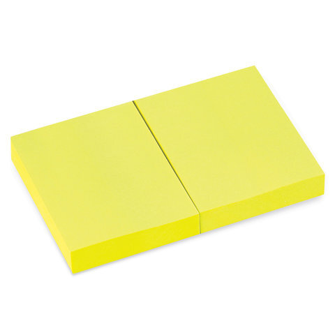 Блок самоклеящийся (стикеры), BRAUBERG, НЕОНОВЫЙ, 38х51 мм, 90 листов, КОМПЛЕКТ 2 штуки, желтый, 122698