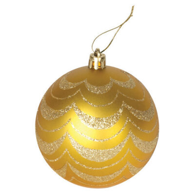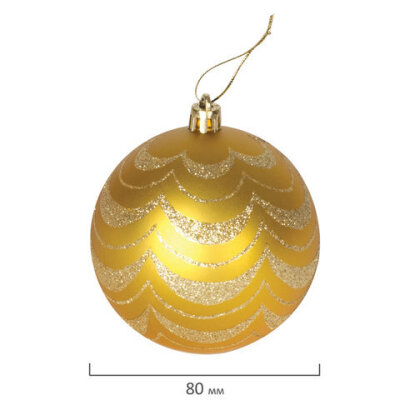 Шары ёлочные 6 шт., 8 см, "Basic Art", пластик, золотистые матовые с узором, ЗОЛОТАЯ СКАЗКА, 590890