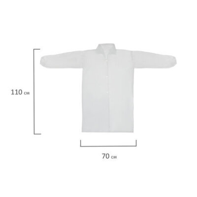 Халат одноразовый белый на липучках КОМПЛЕКТ 10 шт., XXL, 56-58 размер, 110 см, рукав на резинке, 25 г/м2, СНАБЛАЙН