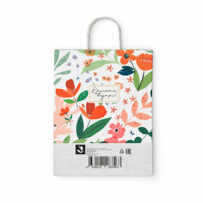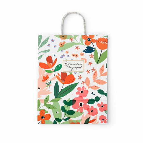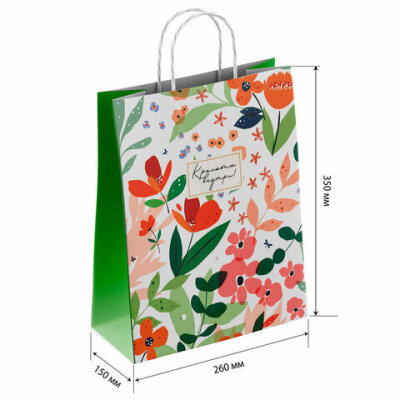 Крафт-пакет бумажный "Красота внутри" 26х15х35 см, с кручеными ручками, плотность 100 г/м2, белый, 113563