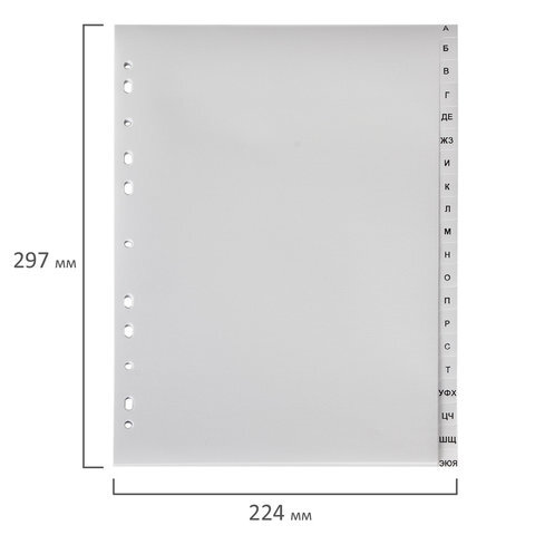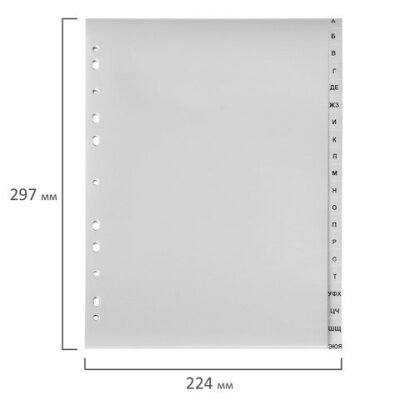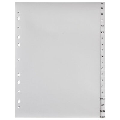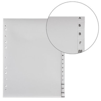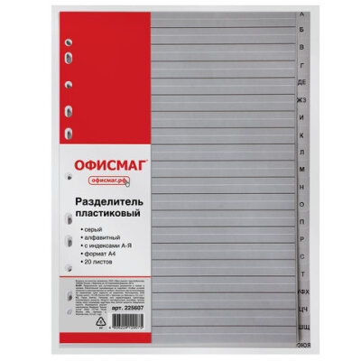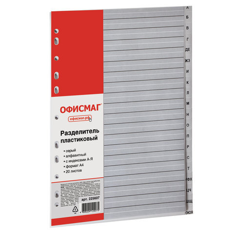 Разделитель пластиковый ОФИСМАГ, А4, 20 листов, алфавитный А-Я, оглавление, серый, РОССИЯ, 225607
