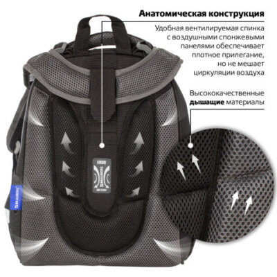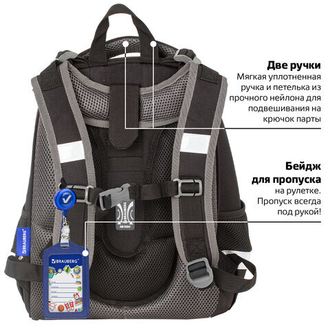 Ранец BRAUBERG PREMIUM, 2 отделения, с брелком, UFO, 38х29х16 см, 227815