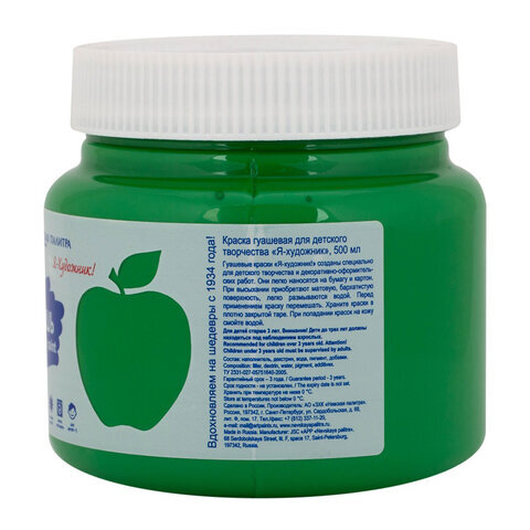Гуашь "Я - Художник!" Невская Палитра, банка 500 мл, зеленая светлая, 23024717