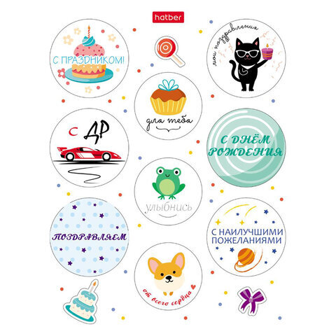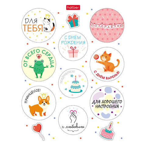 Наклейки бумажные поздравления и пожелания, НАБОР 4 листа, 49 наклеек, HATBER, 4Н6н