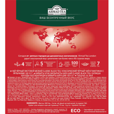 Чай AHMAD "Classic Black Tea", черный, 100 пакетиков по 2 г, 1665-08