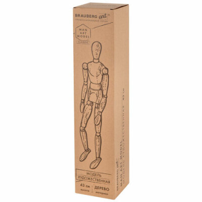 Манекен человека художественный BRAUBERG ART "CLASSIC" выполнен из натурального дерева и изображает человеческую фигуру с подвижными руками, ногами и головой. Он используется художниками для зарисовки различных поз человека.