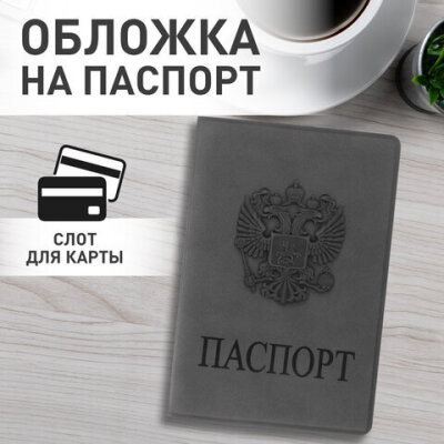 Обложка для паспорта, мягкий полиуретан, "Герб", светло-серая, STAFF, 237610