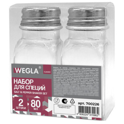 Набор для специй 2х80 мл, CLASSIC, солонка + перечница, стекло/сталь, WEGLA (ВЕГЛА), 700226
