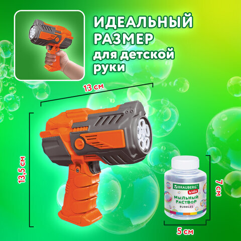 Генератор мыльных пузырей BRAUBERG KIDS доставит ребенку массу удовольствия и поможет отлично развлечься на любом празднике. Игры с мыльными пузырями развивают координацию движений и учат следить за движущимися предметами.