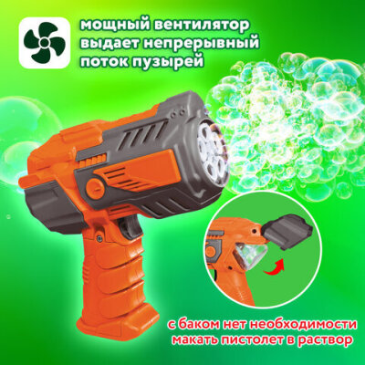 Мыльные пузыри Бластер Генератор с потайным баком, раствор 80 мл, BRAUBERG KIDS, 665148