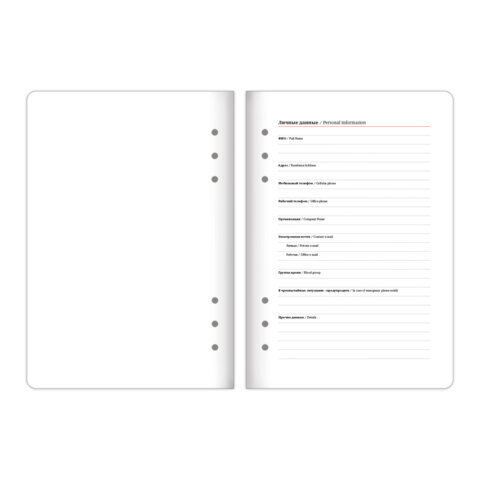 | Особенности | перфорация уголков, скругленные углы, справочная информация, фиксатор для ручки |