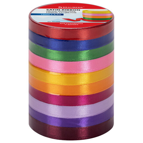 Лента атласная ширина 10 мм, набор 10 цветов по 4,5 м, BRAUBERG, 591506
