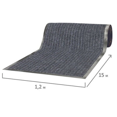 Коврик дорожка ворсовый влаго-грязезащита 1,2х15 м, толщина 7 мм, РЕБРИСТЫЙ, серый, В РУЛОНЕ, LAIMA, 602881
