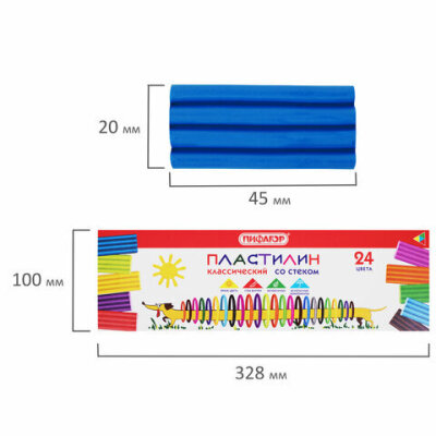 Пластилин классический ПИФАГОР "Веселая такса", 24 цвета, 360 г, СО СТЕКОМ, 106676