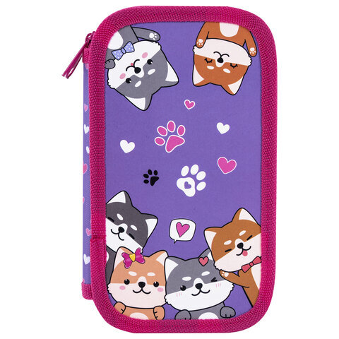 Пенал ЮНЛАНДИЯ стандартного размера с двумя отделениями. Выполнен из картона с эффектом soft-touch. Яркий дизайн. Удобная молния с металлическим бегунком с трех сторон, прочные резинки для канцелярских принадлежностей. Вмещает до 28 предметов.