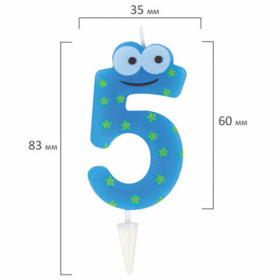 Свечи для торта являются неотъемлемым атрибутом праздника. Свеча-цифра для торта "5" "С глазками" ЗОЛОТАЯ СКАЗКА станет прекрасным украшением торта и других кондитерских изделий по случаю детского дня рождения.