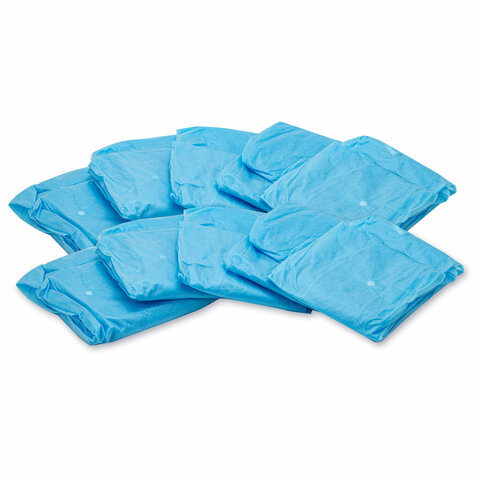 Халат одноразовый голубой на кнопках КОМПЛЕКТ 10 шт., XL, 52-54 размер, 110 см, рукав на резинке, 30 г/м2, ОПТИТРЕЙД