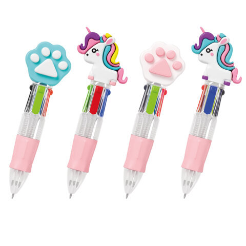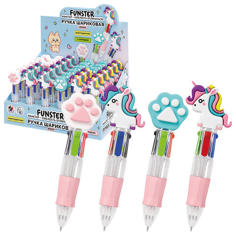 Ручка мини многоцветная с топпером шариковая автоматическая 4 ЦВЕТА FUNSTER "MIX", ассорти, пишущий узел 0,7 мм, линия письма 0,35, 144378