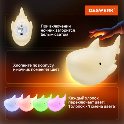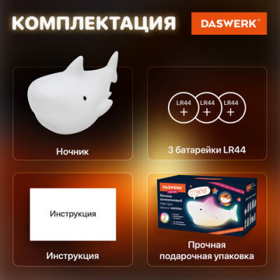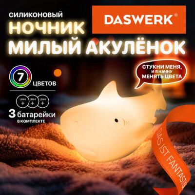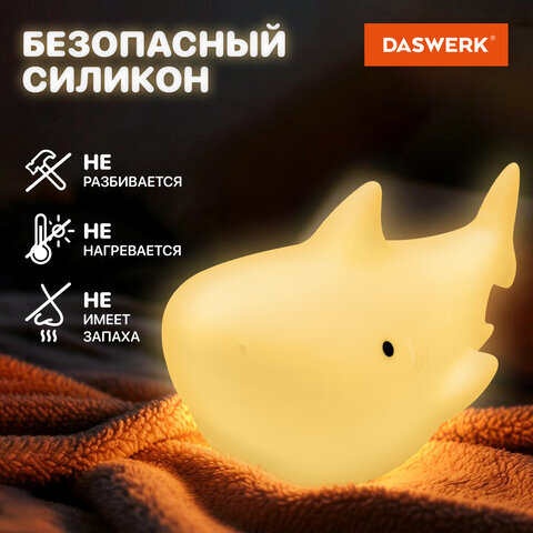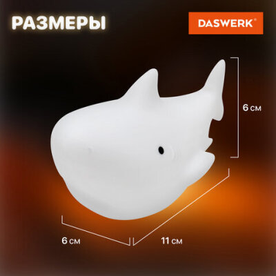 • Силиконовый ночник DASWERK предназначен для мягкого освещения пространства. Эта милая акула станет не только забавным элементом декора, но и поможет владельцу уснуть в комфортной обстановке.