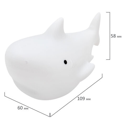 Ночник силиконовый LED "Акула" 109x60x58 мм, белый свет/RGB, на батарейках (в комплекте), DASWERK (ДАСВЕРК), 238932