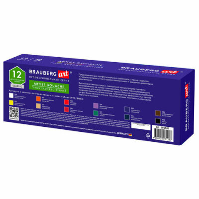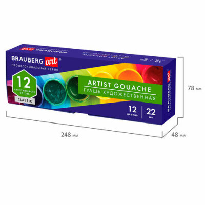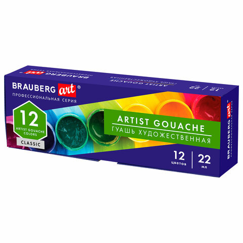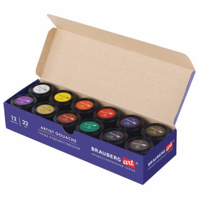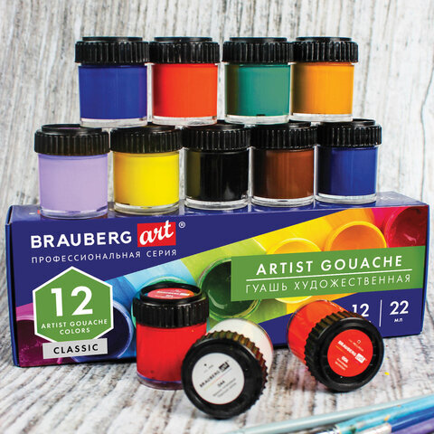 • Художественная гуашь профессиональной серии BRAUBERG ART CLASSIC предназначена для живописи, художественных и декоративно-оформительских работ. Обладает высокой укрывистостью. Быстро сохнет, сохраняет яркий и насыщенный цвет.