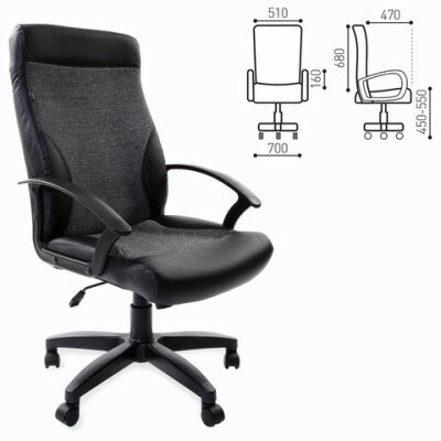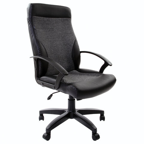 Кресло офисное BRABIX "Trust EX-535", экокожа черная, ткань серая, 531383