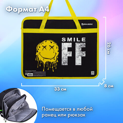 Папка на молнии с ручками BRAUBERG А4 "OFF" предназначена для транспортировки и хранения канцелярских принадлежностей и учебных пособий. Папка защитит содержимое от замятий и повреждений. Идеально подходит для внешкольных занятий.