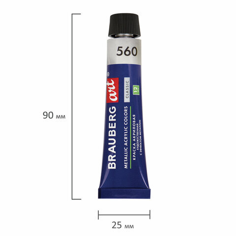 Краски акриловые художественные металлик BRAUBERG ART CLASSIC, НАБОР 12 шт, в тубах 12 мл, 191719