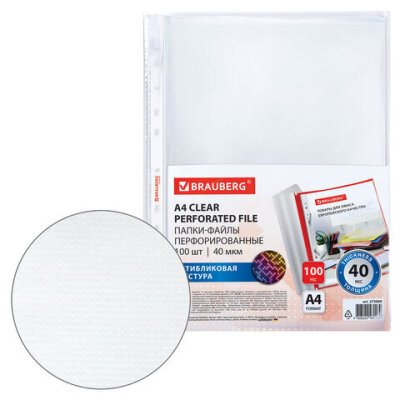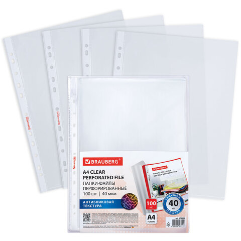 Перфорированные папки-файлы BRAUBERG предназначены для хранения и защиты бумажных документов от загрязнения и механических повреждений.
