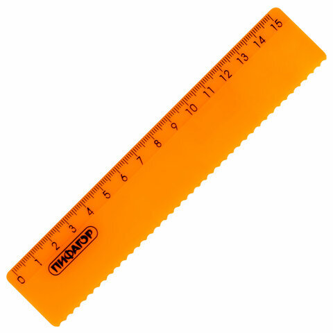 Линейка пластиковая 15 см, ПИФАГОР, неоновая, ассорти, с волнистым краем, 210614
