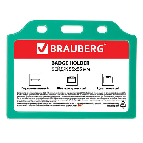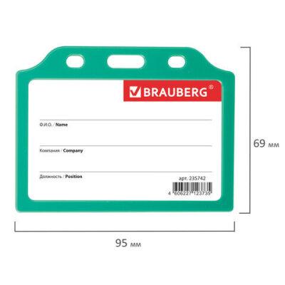 Горизонтальный бейдж BRAUBERG для именной карточки предназначен для идентификации сотрудников в компаниях, а также на семинарах, тренингах, презентациях и других мероприятиях.