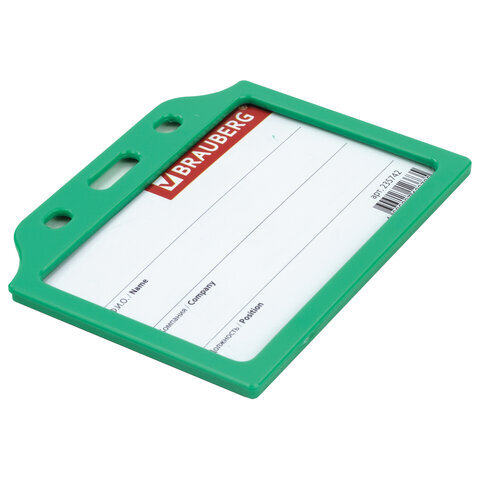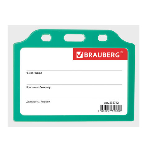 Бейдж горизонтальный жесткокаркасный (55х85 мм), без держателя, ЗЕЛЕНЫЙ, BRAUBERG, 235742