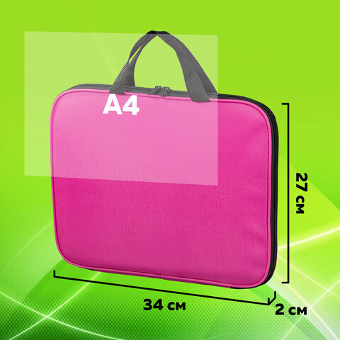 Папка на молнии с ручками STAFF EVERYDAY, А4, полиэстер, ярко-розовая, 270734