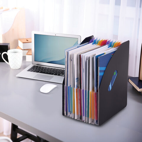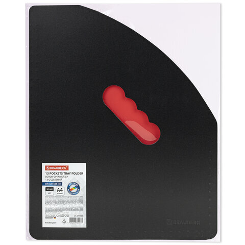 Лоток-органайзер вертикальный для бумаг и документов, 13 отделений, BRAUBERG DOCS, А4 черный, 271153