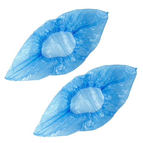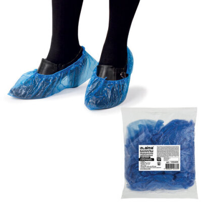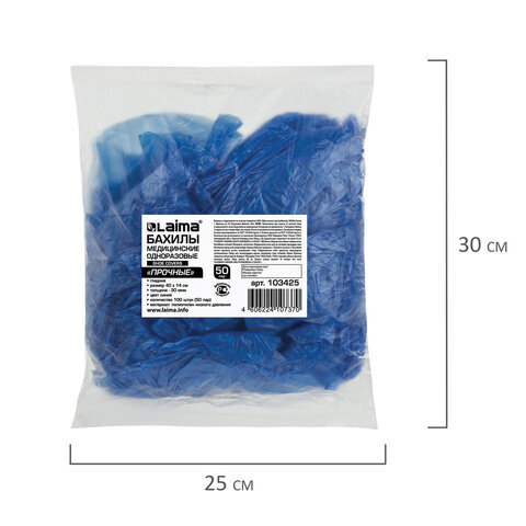 Бахилы КОМПЛЕКТ 100 штук (50 пар) в упаковке, ПРОЧНЫЕ, 40х14 см, 4 г, ПНД, LAIMA, 103425