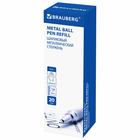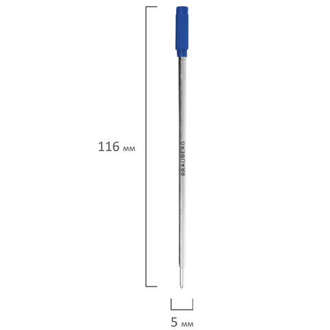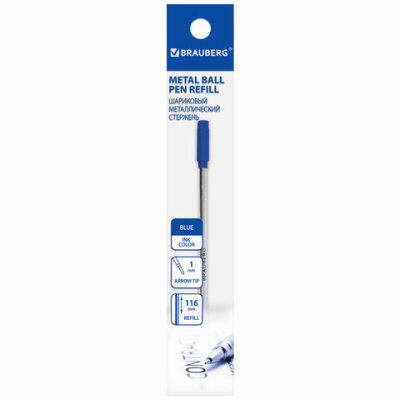 Стержень шариковый BRAUBERG, металлический, 116 мм, тип CROSS, узел 1 мм, упаковка с подвесом, синий, 170201
