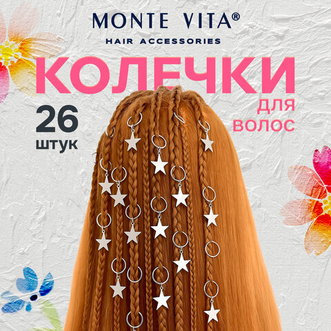 Колечки-пирсинг для волос 26 штук (12 со звездочками, 14 колечки), серебристый, MONTE VITA (МОНТЕ ВИТА), 457106