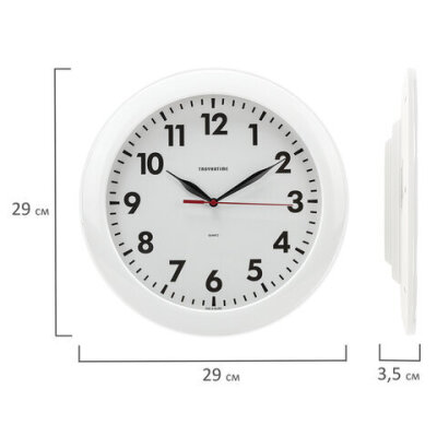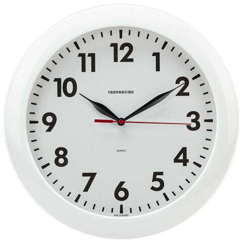 Часы настенные TROYKATIME (TROYKA) 11110118, круг, белые, белая рамка, 29х29х3,5 см