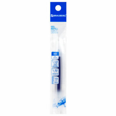 Стержень гелевый BRAUBERG 110 мм, СИНИЙ, узел 0,5 мм, линия письма 0,35 мм, 170172