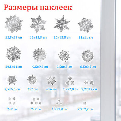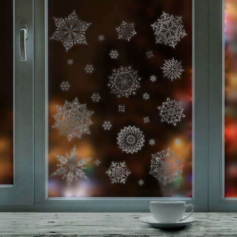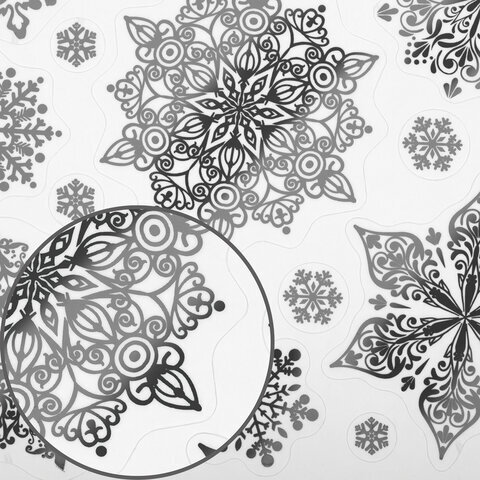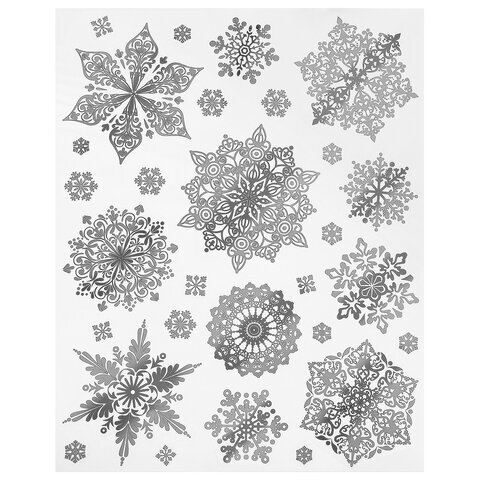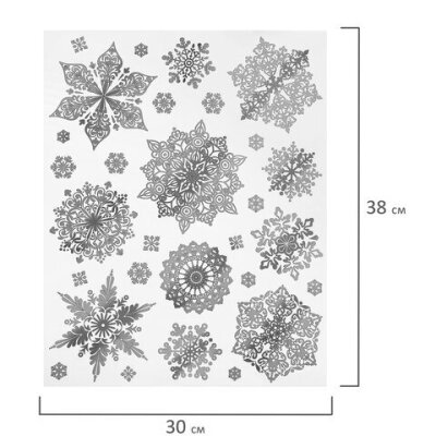 Наклейка для окон двусторонняя МНОГОРАЗОВАЯ 30х38 см, "Снежинки", фольга, серебро, ЗОЛОТАЯ СКАЗКА, 591928