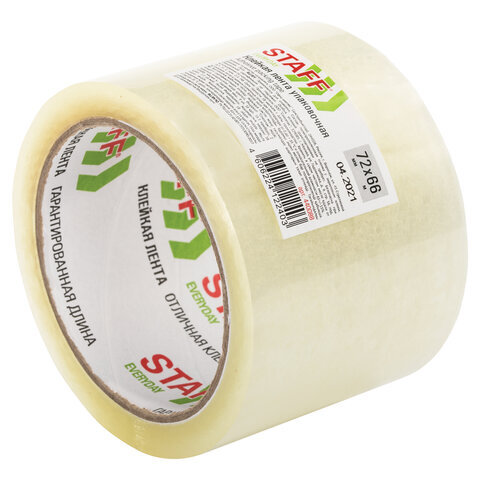 Клейкая лента упаковочная 72 мм x 66 м, прозрачная, толщина 40 микрон, STAFF, 440088