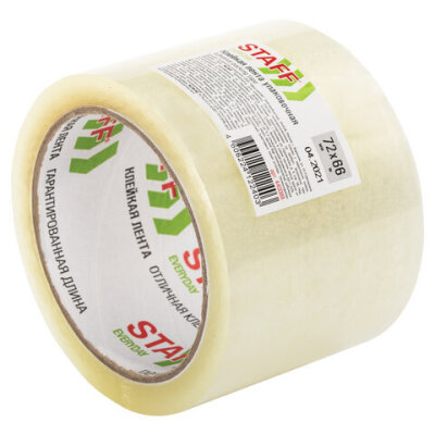 Упаковочная клейкая лента STAFF используется в образовательных организациях и офисах, в быту, в торговле и промышленности, незаменима в качестве упаковочного материала.