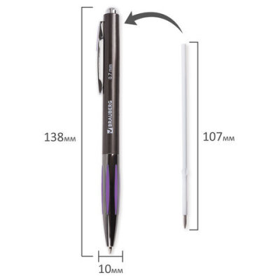 • Автоматическая шариковая ручка BRAUBERG "Stripe" выполнена из высококачественных материалов, что обеспечивает надежность и долговечность в использовании.