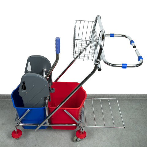 | Комплектация | держатель для мешка, защитные диски на колесах, корзина для бытовой химии, отжим для МОПов, перекидная ручка, платформа, поддон, полка-мостик, транспортная ручка |