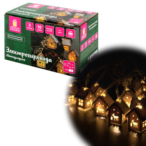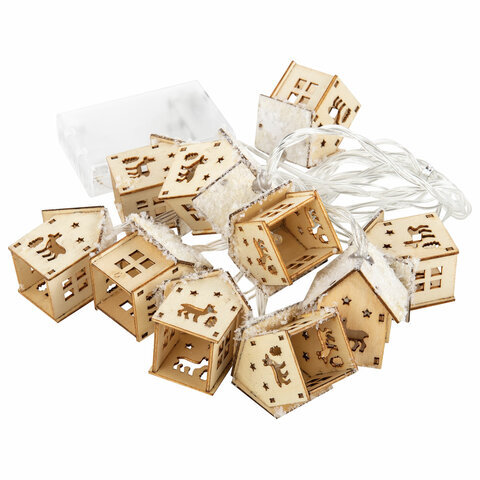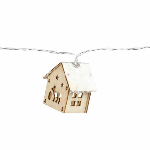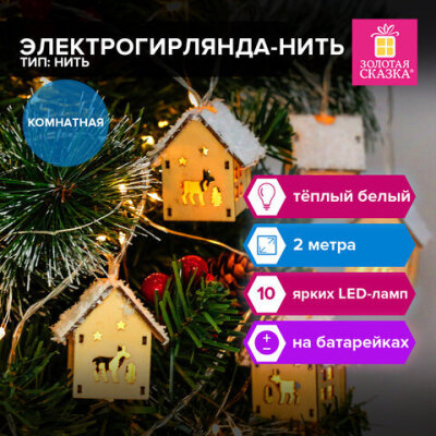 Электрогирлянда-нить комнатная "Домики дерево", 2 м, 10 LED, теплый белый, на батарейках, ЗОЛОТАЯ СКАЗКА, 591728