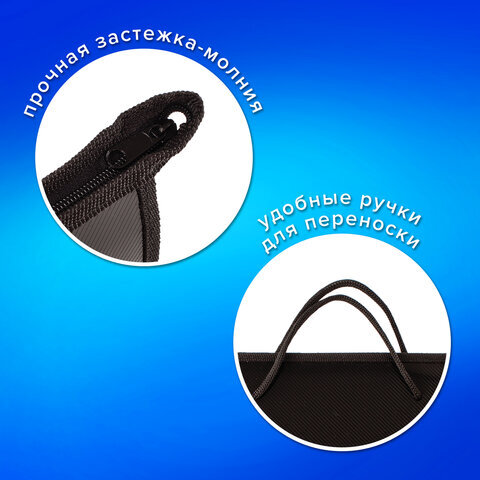 Папка на молнии с ручками ПИФАГОР, А4, 1 отделение, пластик, 55 мм, черная, 228236