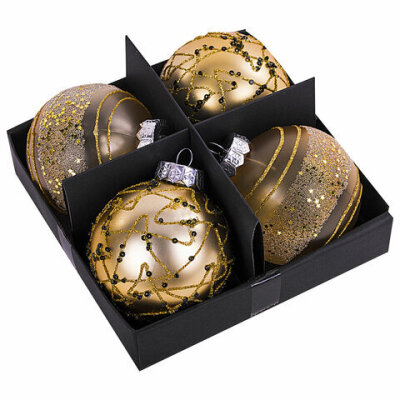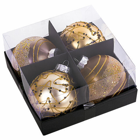 Шары ёлочные 4 шт., 8 см, "Constellation", пластик, цвет: золотистый с узором, ЗОЛОТАЯ СКАЗКА, 591996