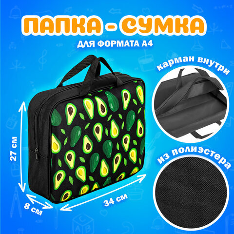 Папка на молнии с ручками А4, мешок для обуви 42х33 см, пенал 20х10 см, "Avocado" НАБОР BRAUBERG, 271433