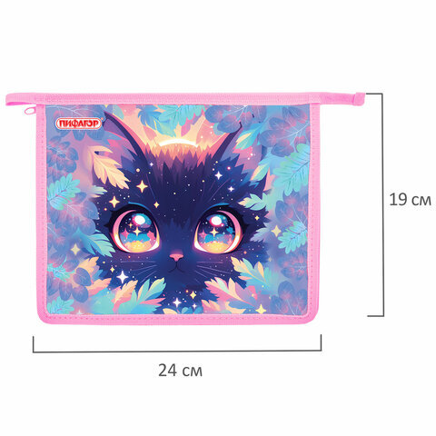 Папка для тетрадей ПИФАГОР А5, 1 отделение, пластик, на молнии, "Magic kitty", 273327